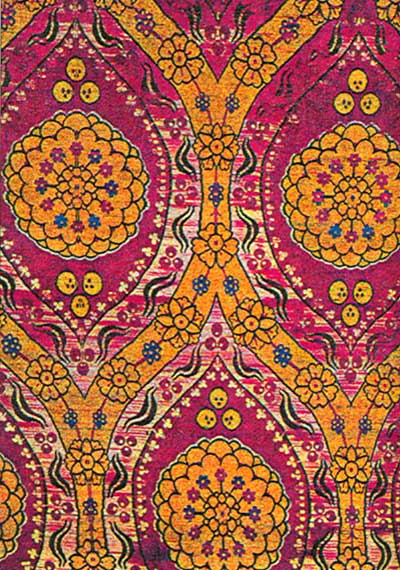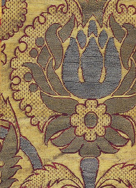 Такие ткани не содержали золотые нити, но были украшены вышивкой с изображениями животных, растений, ангелов и святых.