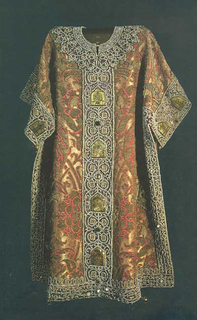 - В царских покоях и в казне всегда хранилось несколько готовых одежд из этого материала, для того чтобы их можно было надевать во время торжественных церемоний.